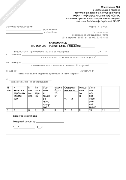 Ведомость налива и отгрузки нефтепродуктов. Форма № 18-НП