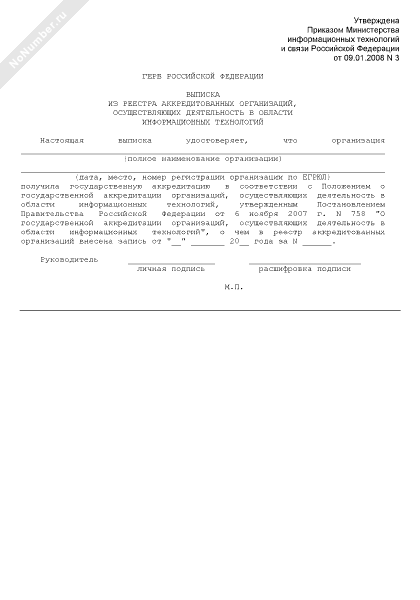 - 203Выписка из реестра аккредитованных организаций, осуществляющих деятельность в области информационных технологий и связи Российской Федерации