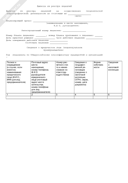 - 217Выписка из реестра лицензий на осуществление геодезической (картографической) деятельности