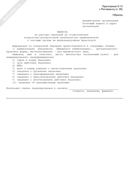 - 205Выписка из реестра лицензий на осуществление погрузочно-разгрузочной деятельности применительно к опасным грузам на железнодорожном транспорте