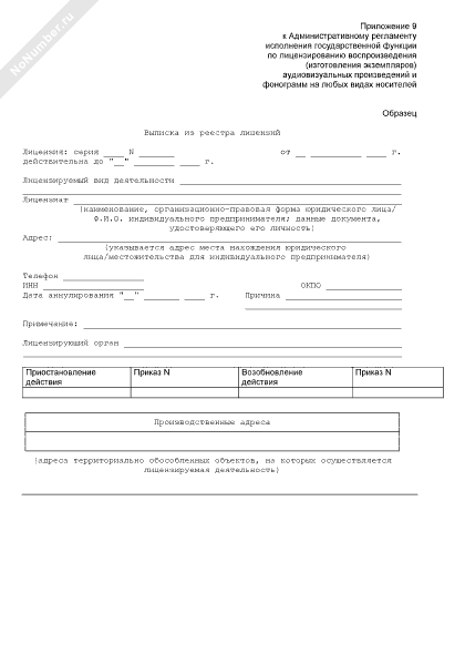 - 204Выписка из реестра лицензий на осуществление воспроизведения (изготовления экземпляров) аудиовизуальных произведений и фонограмм на любых видах носителей