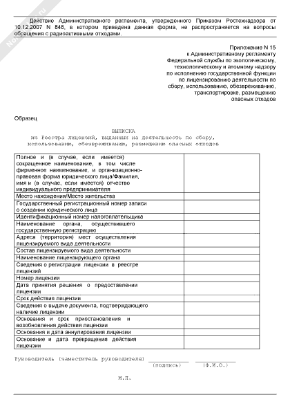- 202Выписка из Реестра лицензий, выданных на деятельность по сбору, использованию, обезвреживанию, размещению опасных отходов в Федеральной службе по экологическому, технологическому и атомному надзору