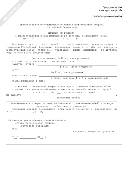 - 220Выписка из решения о предоставлении военнослужащему жилых помещений по договору социального найма