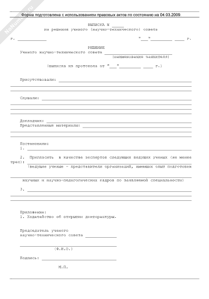 - 219Выписка из решения ученого (научно-технического) совета