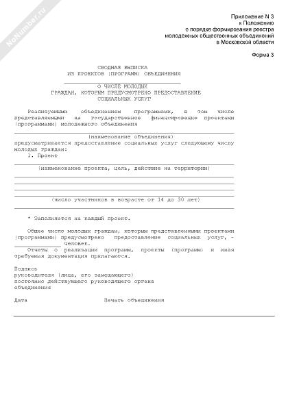 Сводная выписка из проектов (программ) молодежного общественного объединения о числе молодых граждан, которым предусмотрено предоставление социальных услуг (форма № 3)