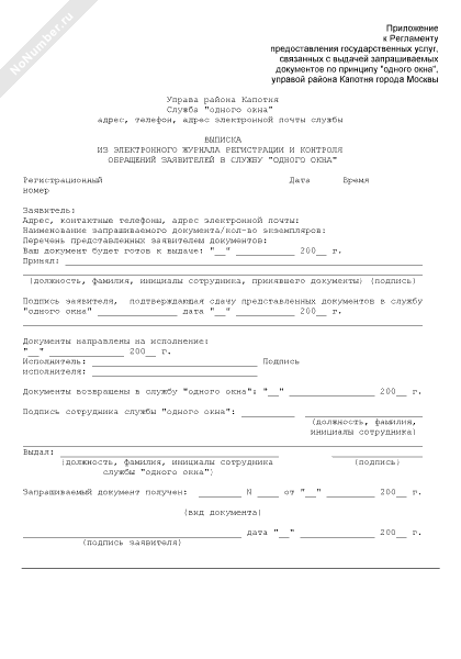 Выписка из электронного журнала регистрации и контроля обращений заявителей в службу «одного окна» управы района Капотня города Москвы (рекомендуемый образец заполнения)
