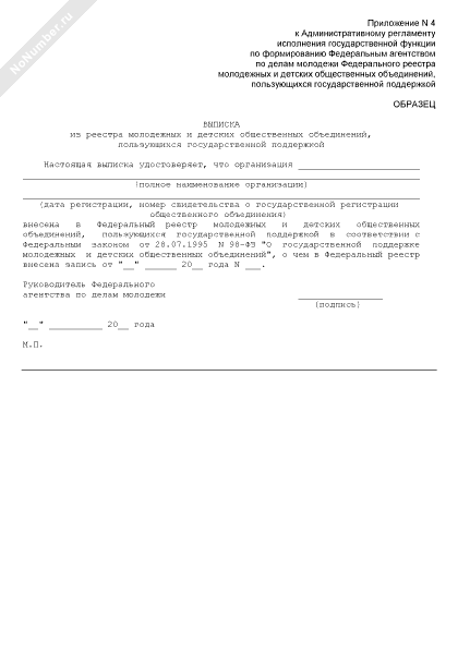Выписка из реестра молодежных и детских общественных объединений, пользующихся государственной поддержкой (рекомендуемый образец заполнения)