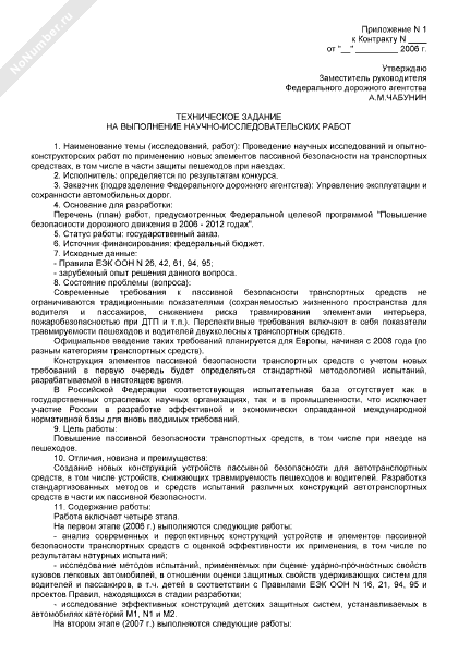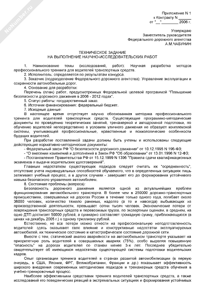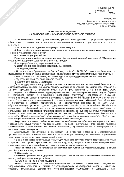 - 100Техническое задание на выполнение научно-исследовательских работ (приложение к государственному контракту на выполнение НИОКР (поставку готовой научно-технической продукции по теме: «Исследование и разработка проблемы обязательного применения специальных удерживающих устройств при перевозках детей и животных»))