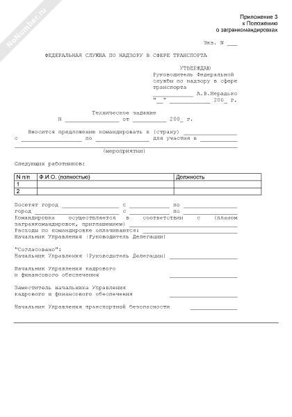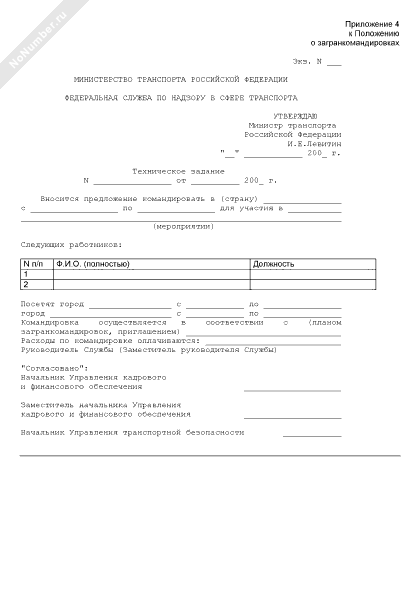 - 119Техническое задание индивидуальной командировки за границу работника Федеральной службы по надзору в сфере транспорта