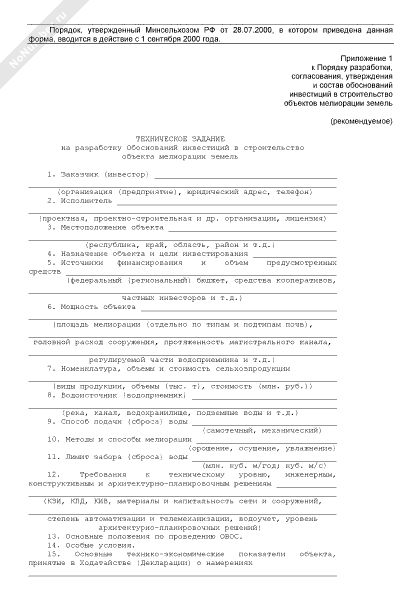 - 101Техническое задание на разработку обоснований инвестиций в строительство объекта мелиорации земель