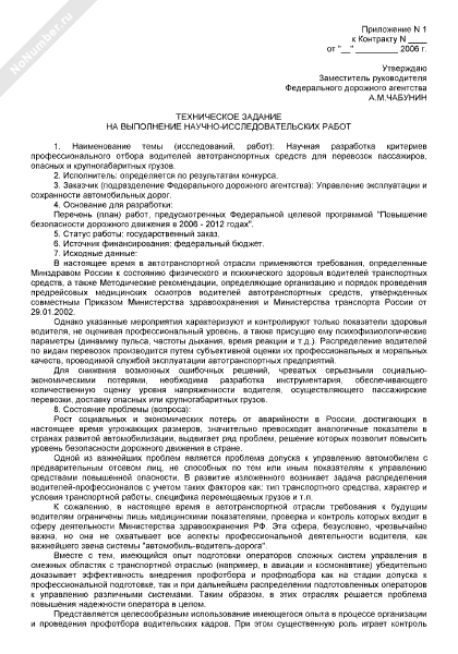 - 104Техническое задание на выполнение научно-исследовательских работ (приложение к государственному контракту на выполнение НИОКР (поставку готовой научно-технической продукции по теме: «Научная разработка критериев профессионального отбора водителей автотранспортных средств для перевозок пассажиров, опасных и крупногабаритных грузов»))