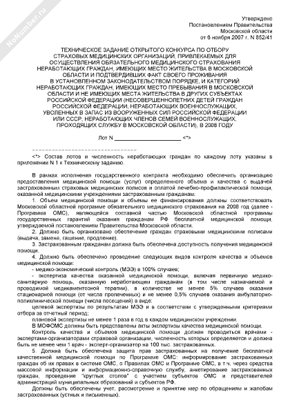 - 114Техническое задание открытого конкурса по отбору страховых медицинских организаций, привлекаемых для осуществления обязательного медицинского страхования неработающих граждан, имеющих место жительства в Московской области и подтвердивших факт своего проживания в установленном законодательством порядке, и категорий неработающих граждан, имеющих место пребывания в Московской области и не имеющих места жительства в других субъектах РФ