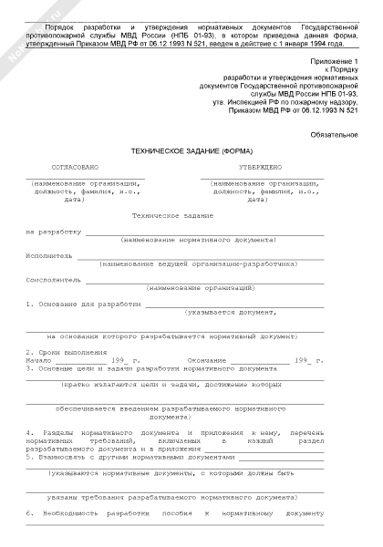 - 123Техническое задание (форма) на разработку нормативного документа государственной противопожарной службы МВД России