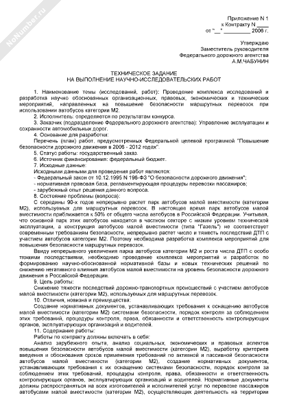 - 126Техническое задание на выполнение научно-исследовательских работ (приложение к государственному контракту на выполнение НИОКР (поставку готовой научно-технической продукции по теме: «Проведение комплекса исследований и разработка научно обоснованных организационных, правовых, экономических и технических мероприятий, направленных на повышение безопасности маршрутных перевозок при использовании автобусов категории М2»))