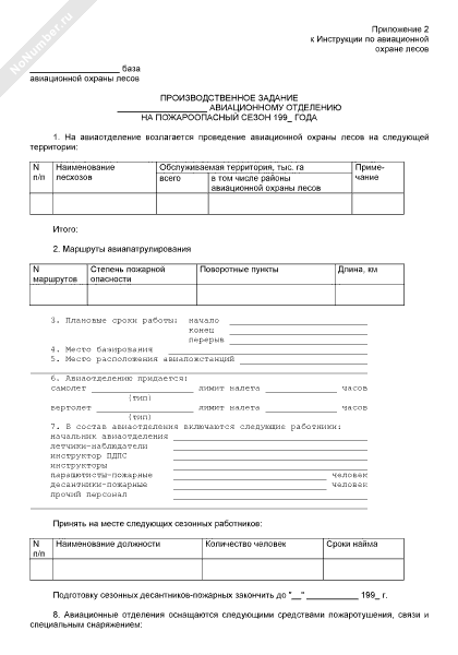 Производственное задание авиационному отделению на пожароопасный сезон (рекомендуемый образец заполнения)