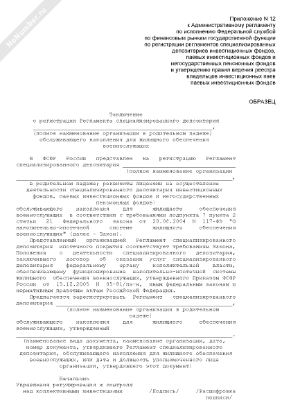 - 206Заключение о регистрации Регламента специализированного депозитария организации обслуживающего накопления для жилищного обеспечения военнослужащих