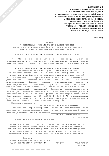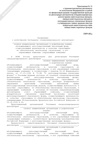 - 202Заключение о регистрации Регламента специализированного депозитария инвестиционных фондов, паевых инвестиционных фондов и негосударственных пенсионных фондов
