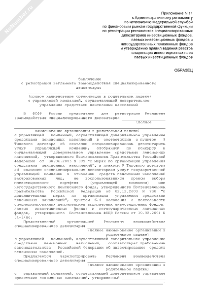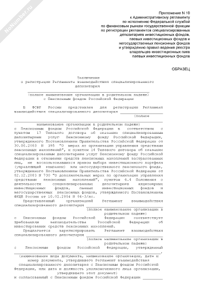- 204Заключение о регистрации Регламента взаимодействия специализированного депозитария организации с Пенсионным фондом Российской Федерации