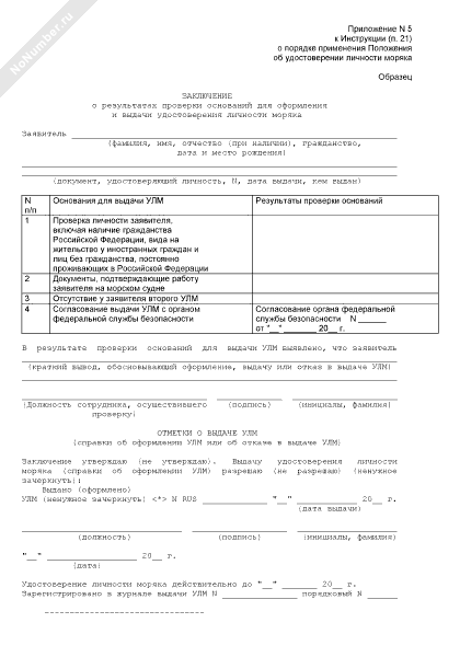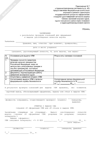 - 217Заключение о результатах проверки оснований для оформления и выдачи удостоверения личности моряка
