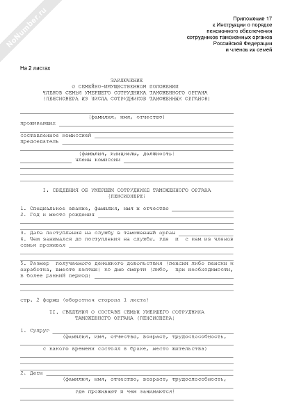 - 220Заключение о семейно-имущественном положении членов семьи умершего сотрудника таможенного органа (пенсионера из числа сотрудников таможенных органов)