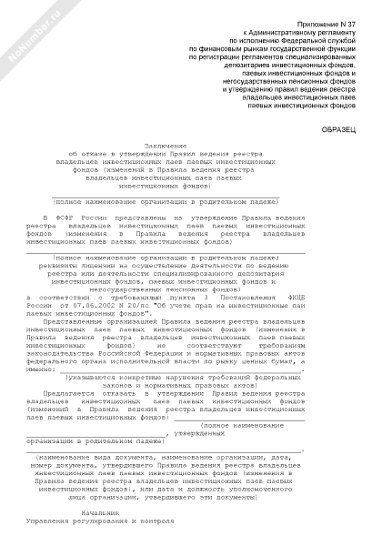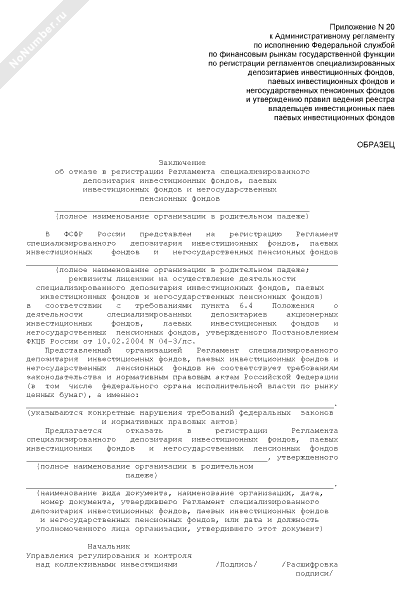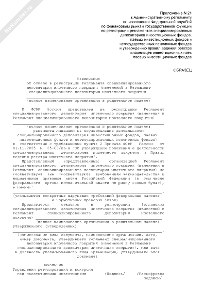 - 262Заключение об отказе в регистрации Регламента специализированного депозитария инвестиционных фондов, паевых инвестиционных фондов и негосударственных пенсионных фондов