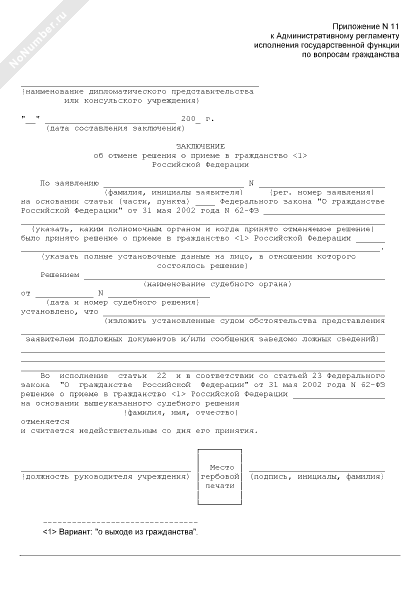- 265Заключение об отмене решения о приеме в гражданство Российской Федерации