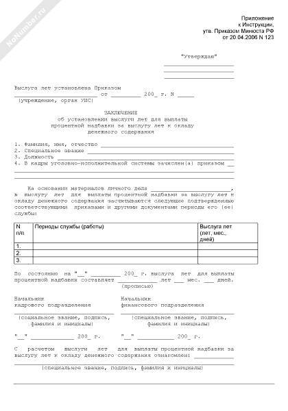 - 273Заключение об установлении выслуги лет для выплаты процентной надбавки за выслугу лет к окладу денежного содержания сотруднику уголовно-исполнительной системы