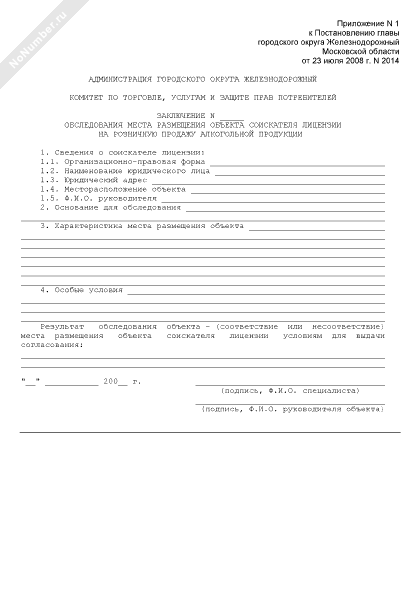 - 277Заключение обследования места размещения объекта соискателя лицензии на розничную продажу алкогольной продукции в г. Железнодорожный Московской области