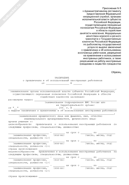 - 279Заключение органа государственной службы занятости населения субъекта Российской Федерации о привлечении и об использований иностранных работников