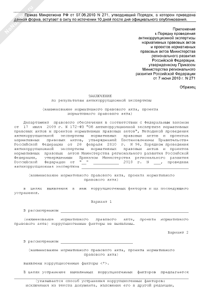 - 338Заключение по результатам антикоррупционной экспертизы нормативных правовых актов и проектов нормативных правовых актов Министерства регионального развития Российской Федерации