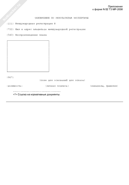 - 326Заключение по результатам экспертизы (приложение к решению об отказе в предоставлении правовой охраны на территории Российской Федерации)