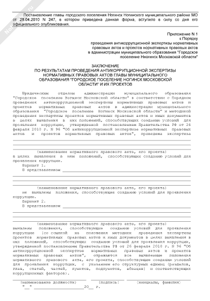 - 337Заключение по результатам проведения антикоррупционной экспертизы нормативных правовых актов главы муниципального образования «Городское поселение Ногинск Московской области» и их проектов