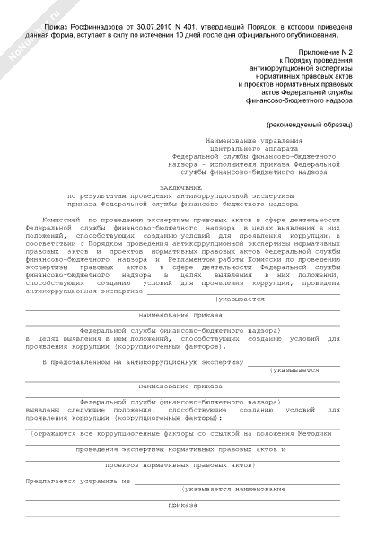 - 340Заключение по результатам проведения антикоррупционной экспертизы приказа Федеральной службы финансово-бюджетного надзора