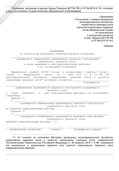 - 333Заключение по результатам проведения антикоррупционной экспертизы нормативного правового акта (проекта нормативного правового акта) в целях выявления в нем коррупциогенных факторов и их последующего устранения