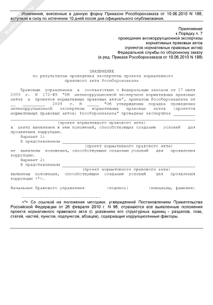 - 336Заключение по результатам проведения экспертизы проекта нормативного правового акта Рособоронзаказа