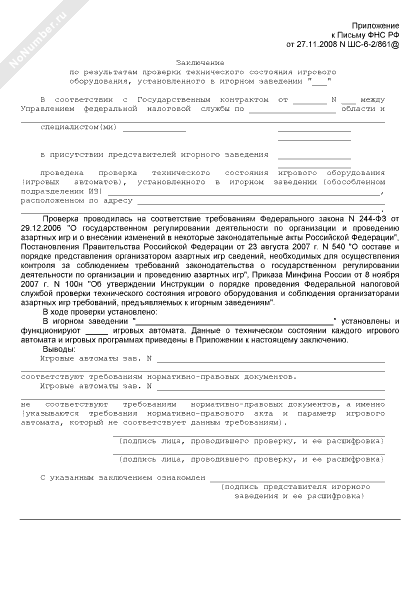 - 323Заключение по результатам проверки технического состояния игрового оборудования, установленного в игорном заведении