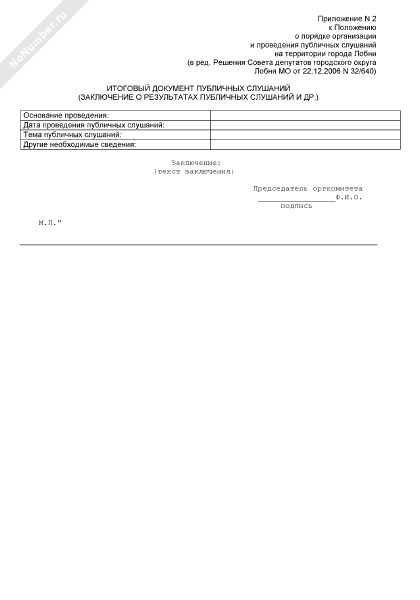 - 399Итоговый документ публичных слушаний (заключение о результатах публичных слушаний и др.) на территории города Лобни Московской области