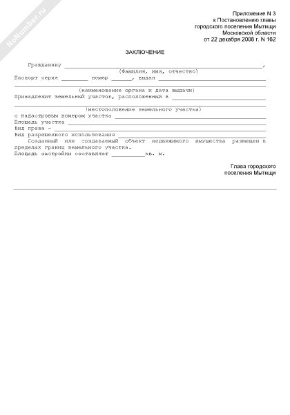 - 397Заключение, подтверждающего размещение созданного или создаваемого объекта недвижимого имущества в пределах границ земельного участка, предоставленного для ведения личного подсобного хозяйства на территории г. Мытищи Московской области