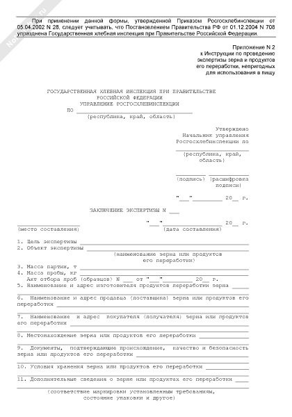 - 387Заключение экспертизы партии зерна и продуктов его переработки, непригодных для использования в пищу