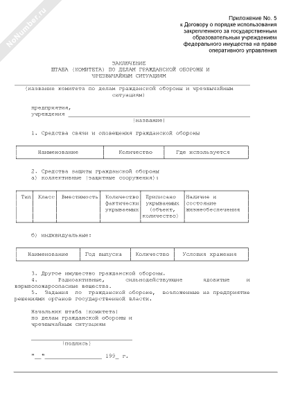 - 381Заключение штаба (комитета) по делам гражданской обороны и чрезвычайным ситуациям (приложение к договору о порядке использования закрепленного за государственным образовательным учреждением федерального имущества на праве оперативного управления)