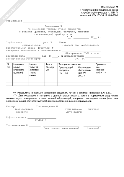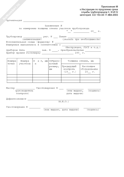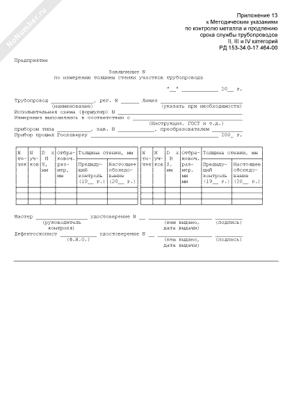 - 432Рекомендуемые формы бланков для оформления материалов по контролю технического состояния. Заключение по измерению толщины стенки участков трубопровода