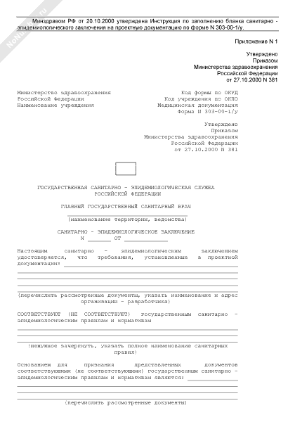 - 435Санитарно-эпидемиологическое заключение на проектную документацию. Форма № 303-00-1/у