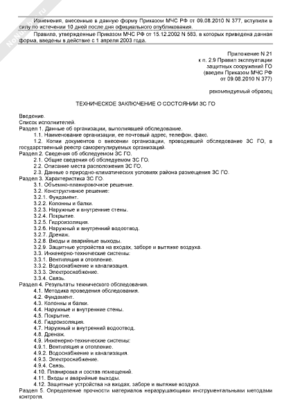 - 438Техническое заключение о состоянии защитных сооружений гражданской обороны