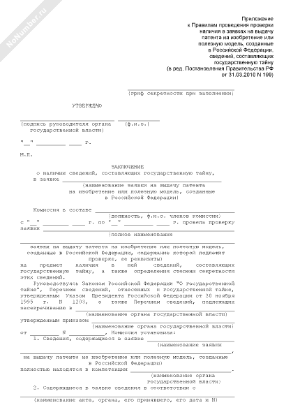 - 120Заключение о наличии сведений, составляющих государственную тайну, в заявке на выдачу патента на изобретение или полезную модель, созданные в Российской Федерации