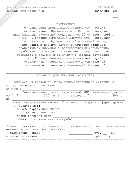 - 101Заключение о выплате единовременного пособия в соответствии с п. 23 Постановления Совета Министров — Правительства РФ от 22.09.1993 № 941