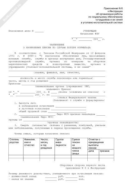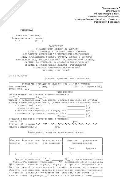 - 118Заключение о назначении пенсии по случаю потери кормильца членам семьи сотрудника уголовно-исполнительной системы