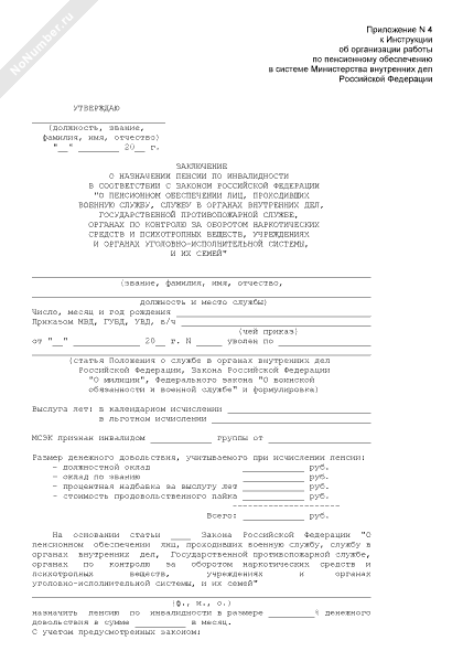 - 115Заключение о назначении пенсии по инвалидности в соответствии с Законом Российской Федерации «О пенсионном обеспечении лиц, проходивших военную службу, службу в органах внутренних дел, Государственной противопожарной службе, органах по контролю за оборотом наркотических средств и психотропных веществ, учреждениях и органах уголовно-исполнительной системы, и их семей»