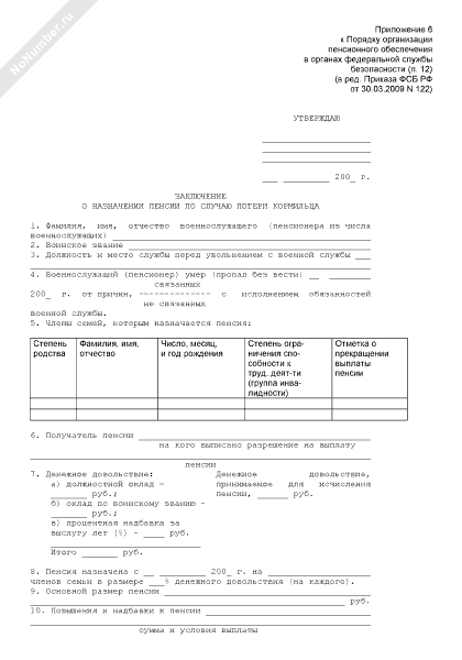 - 113Заключение о назначении пенсии по случаю потери кормильца в органах Федеральной службы безопасности