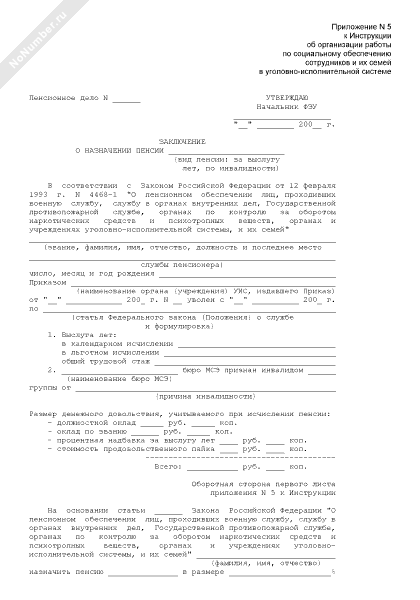 - 117Заключение о назначении пенсии за выслугу лет, по инвалидности сотруднику уголовно-исполнительной системы
