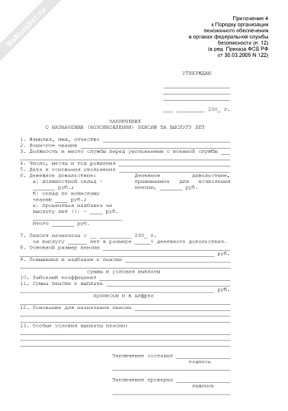 - 114Заключение о назначении пенсии за выслугу лет в соответствии с Законом Российской Федерации «О пенсионном обеспечении лиц, проходивших военную службу, службу в органах внутренних дел, Государственной противопожарной службе, органах по контролю за оборотом наркотических средств и психотропных веществ, учреждениях и органах уголовно-исполнительной системы, и их семей»
